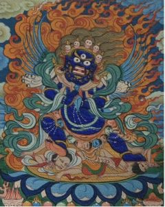 大藏经密续云:普巴金刚是一切诸佛菩萨事业化现的总体,普巴金刚具有三面、六臂、四足、双翅,具有无比大威力,不仅可降魔,亦可息灾。