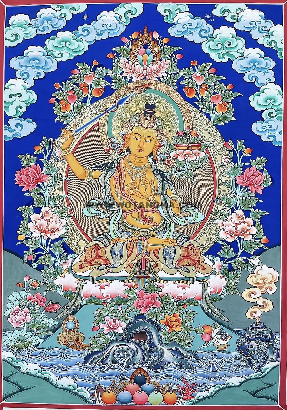 编号188-550022:彩绘唐卡-文殊菩萨(60*45CM左右) | 沃唐卡www.WoTangKa.com