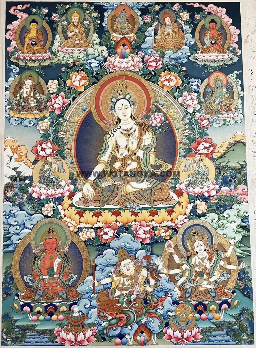 唐卡作品名称:白度母长寿三尊白财神护法诸天佛界吉祥供养图
