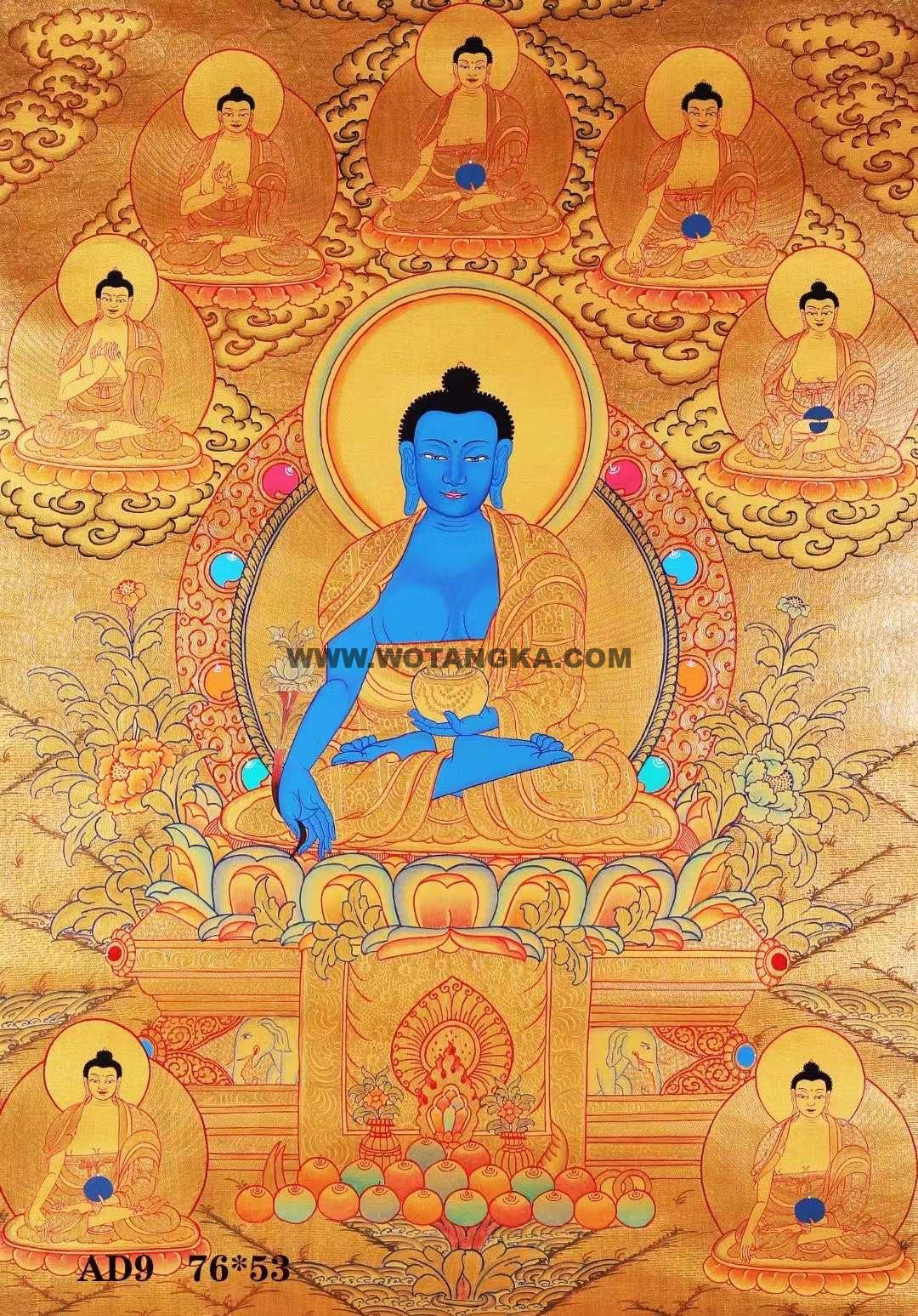 尼泊尔高端手绘金唐《药师佛》《药师琉璃光如来》唐卡手绘布本。金箔唐卡是传统唐卡风格,有道是佛靠金装,传承唐卡文化技艺。此作品采用纯金箔玛瑙笔雕花錾刻,稀缺的矿石颜料上色完成,绘制周期漫长,十分难得。喜欢不要错过。