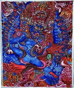 大威德金刚面相:九面代表佛陀的九类教法。发上指向佛地之意思。
