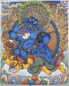 黑财神是由古印度神话中财神(梵名库别拉)演化而来的。藏语称他“赞布绿那布”,意即黑财神。