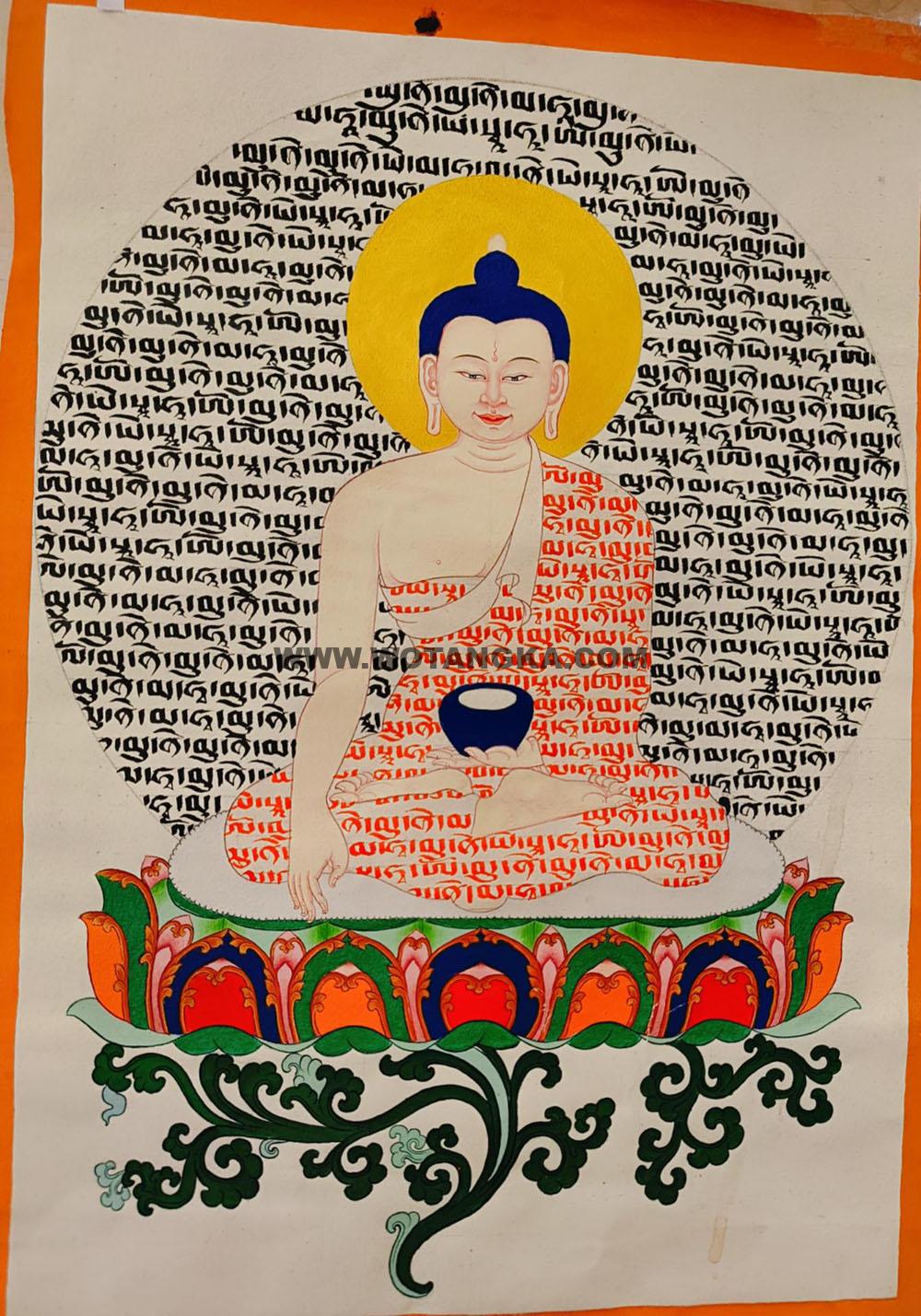 编号188-905899:彩绘唐卡-释迦牟尼佛·经文佛影(60*45CM左右) | 沃唐卡www.WoTangKa.com