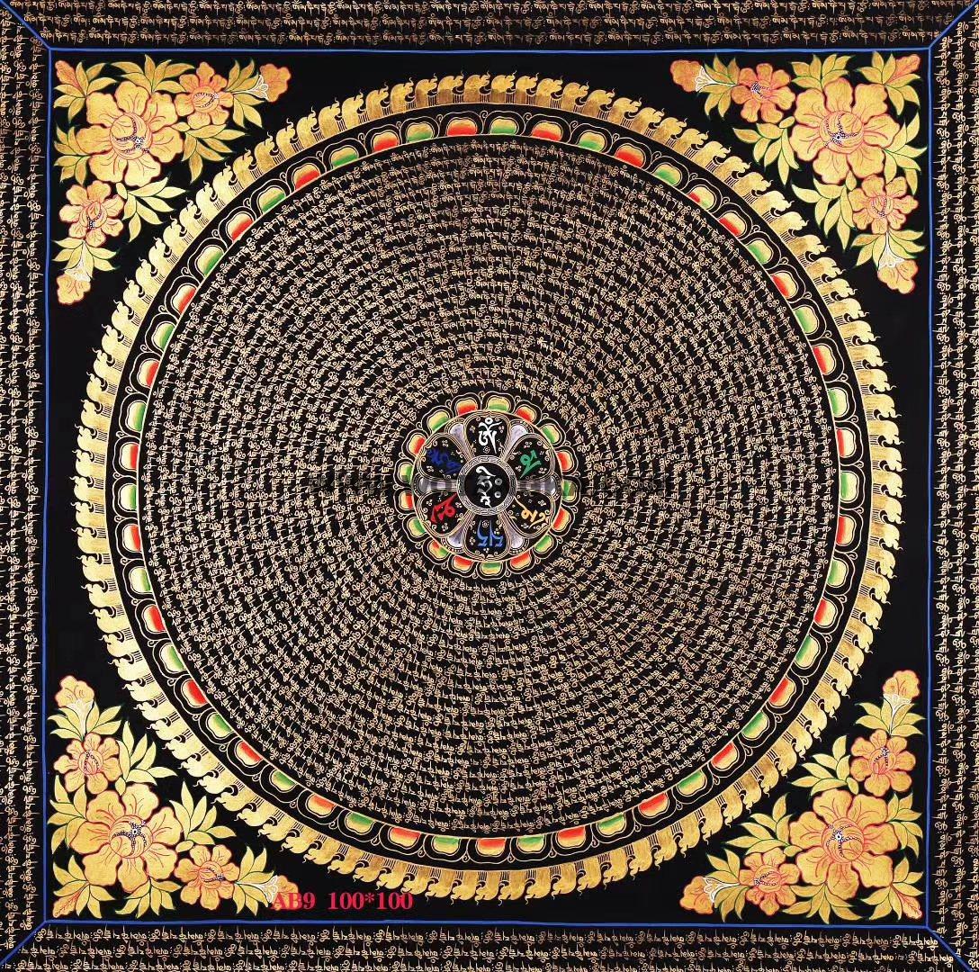 六字真言坛城唐卡是高端会所公司豪宅,背景墙,镇宅首选。坛城象征宇宙本源,是圣坛的代表,挂与家里玄关之处,有镇宅辟邪的妖邪不入的作用,古代著名寺院皇宫都用此法门来镇宅辟邪,十分殊胜。喜欢不要错过。六字大明咒是观世音菩萨心咒,源于梵文中,此咒含有诸佛无尽的加持与慈悲,是诸佛慈悲和智慧的音声显现。能改变命运,修成幸福健康的人生。