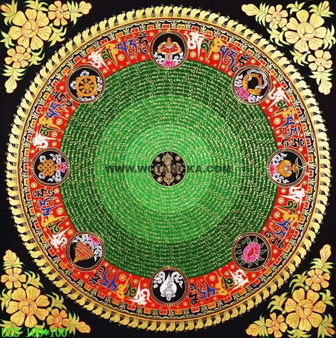 坛城象征宇宙本源,是圣坛的代表,挂与家里玄关之处,有镇宅辟邪的妖邪不入的作用,古代著名寺院皇宫都用此法门来镇宅辟邪,十分殊胜。喜欢不要错过。六字大明咒是观世音菩萨心咒,源于梵文中,此咒含有诸佛无尽的加持与慈悲,是诸佛慈悲和智慧的音声显现。能改变命运,修成幸福健康的人生。