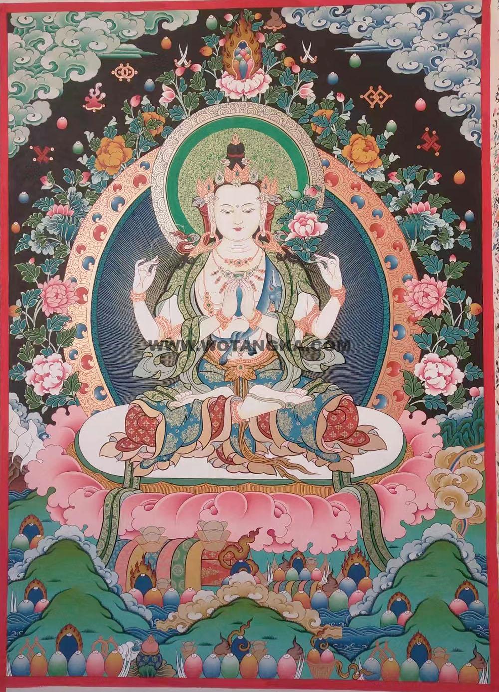 编号188-539029:彩绘唐卡-四臂观音(60*45CM左右) | 沃唐卡www.WoTangKa.com