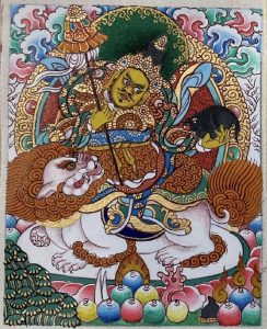 财宝天王是格鲁派祖师宗喀巴大师所供奉的护法。在宗喀巴大师的传记中,就记载着赐予财富、协助宗喀巴大师修建寺院的神奇故事。