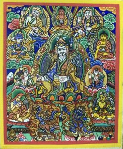 莲花生大士,藏传佛教的主要奠基者。公元八世纪,入藏弘法,创立了西藏第一座寺院。他从印度迎请无垢友等大德入藏,将重要显密经论译成藏文,创建显密经院及密宗道场,开创了在家出家的两种圣者应供轨范,如是等等,奠定了西藏佛教的基础。藏传佛教教徒尊称他为咕汝仁波切(意为大宝上师)、邬金仁波切(乌仗那宝),宁玛派(含义即旧教)的祖师。通称贝玛迥乃(莲花生)。据多罗那他于1610年所著《莲花生传》所载,约于摩揭陀国天护王时出生于邬金国王族。圣诞日:藏历六月初十。