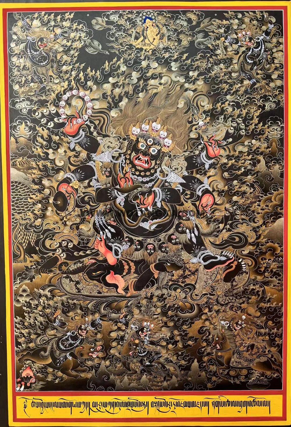 唐卡作品名称:六臂玛哈嘎拉大黑天五人众吉祥本尊供养图