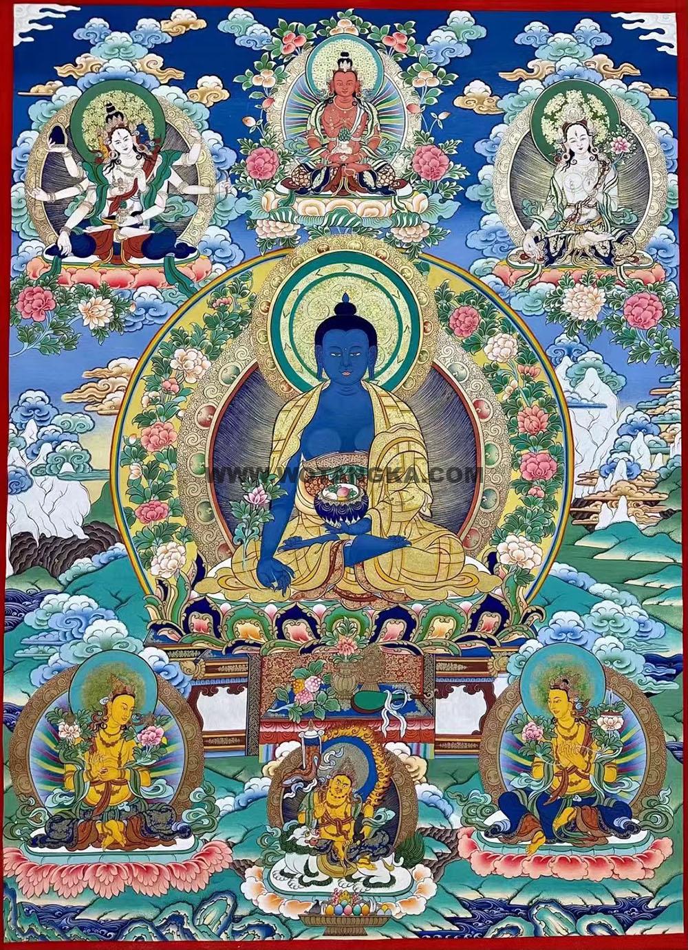 药师佛全称药师琉璃光如来,也有人称大医王佛、医王善逝或消灾延寿药师佛,为东方琉璃净土的教主。为药师本用以比喻能治众生贪、瞋、痴的医师。在中国佛教一般用以祈求消灾延寿。七佛药师即七尊药师。又作七躬医王。藏历初八,药师佛节日。药师七佛住于东方去此四恒河沙乃至十恒河沙世界,曾发大弘誓愿要救拔五浊恶世众生苦恼。佛陀的悲愿无量无边,七佛之弘深本愿不可言尽。
