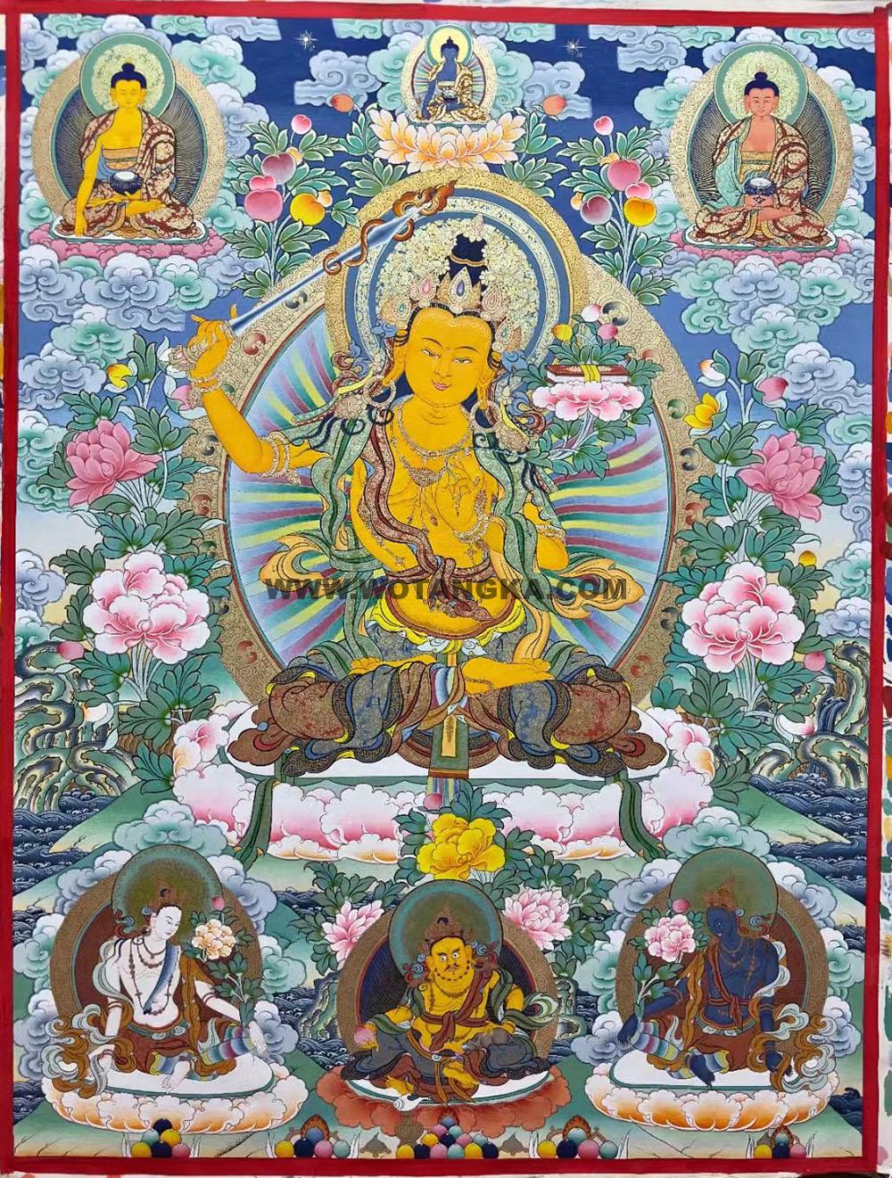 编号188-556837:彩绘唐卡-文殊菩萨·三怙主(80*60CM左右) | 沃唐卡www.WoTangKa.com