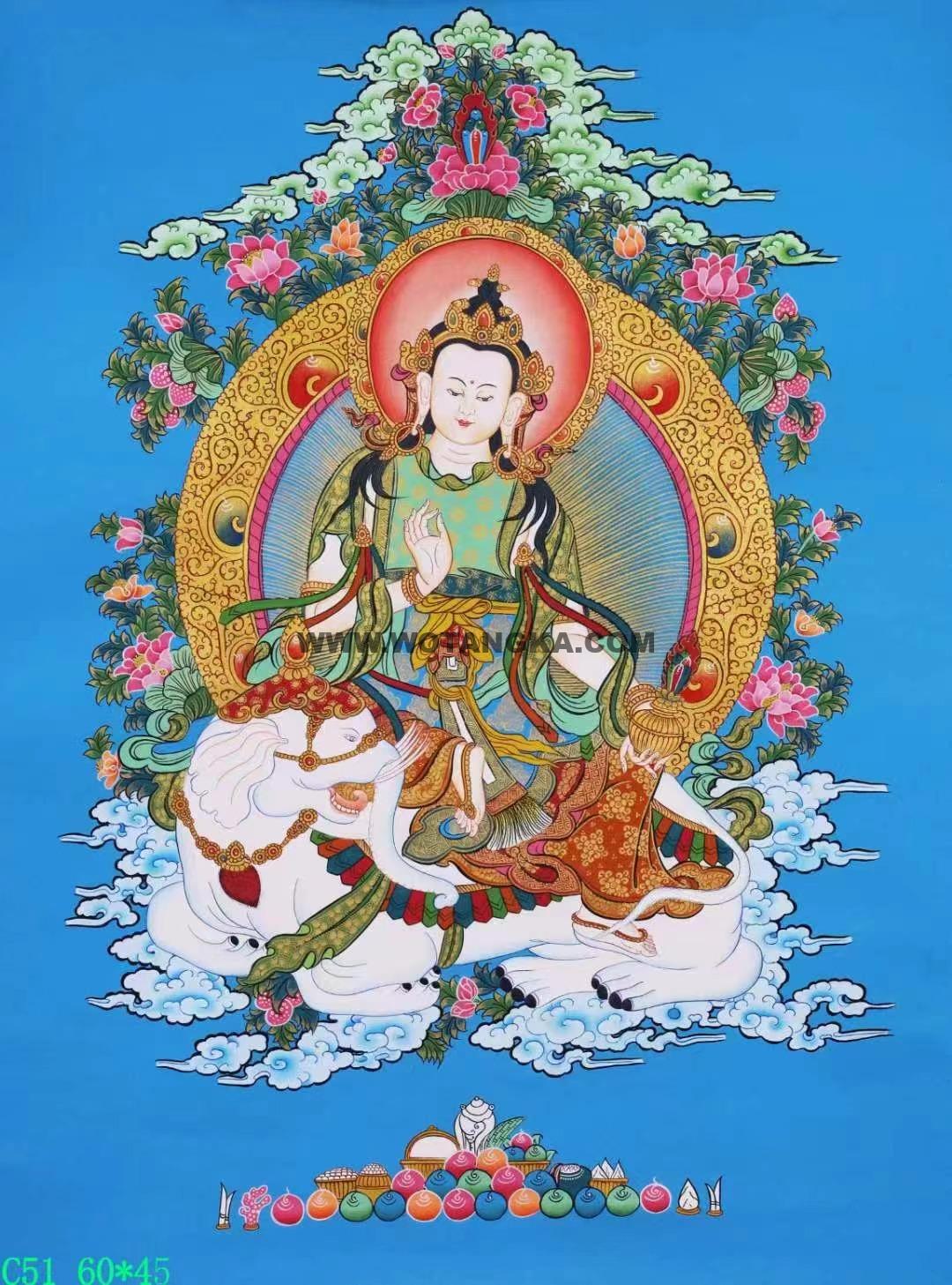 普贤菩萨是礼德和大行愿的象征,象征真理。他以智导行,以行证智,解行并进,完成求佛者的志愿,所以又称“大行普贤菩萨”。敬奉普贤菩萨,能使您实现最大愿望,除掉各种小人,增加领导者的权威,使您人生如愿以偿,幸福美满。