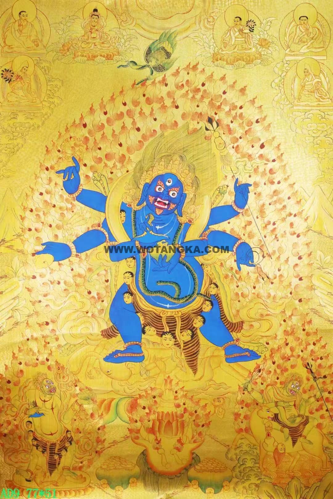 玛哈嘎拉是梵语,译为大黑天,即”怙主”之意,为上师、本尊、护法三根本之护法神,是佛教三根本的化身。其为调伏刚强众生而呈现忿怒相,本尊及眷属护法众除护持佛法外,依缘起多示现为两臂、四臂、六臂黑、白等形象,为藏传佛教诸宗共同推崇的智慧护法,是藏传佛教中最重要的护法神之一。