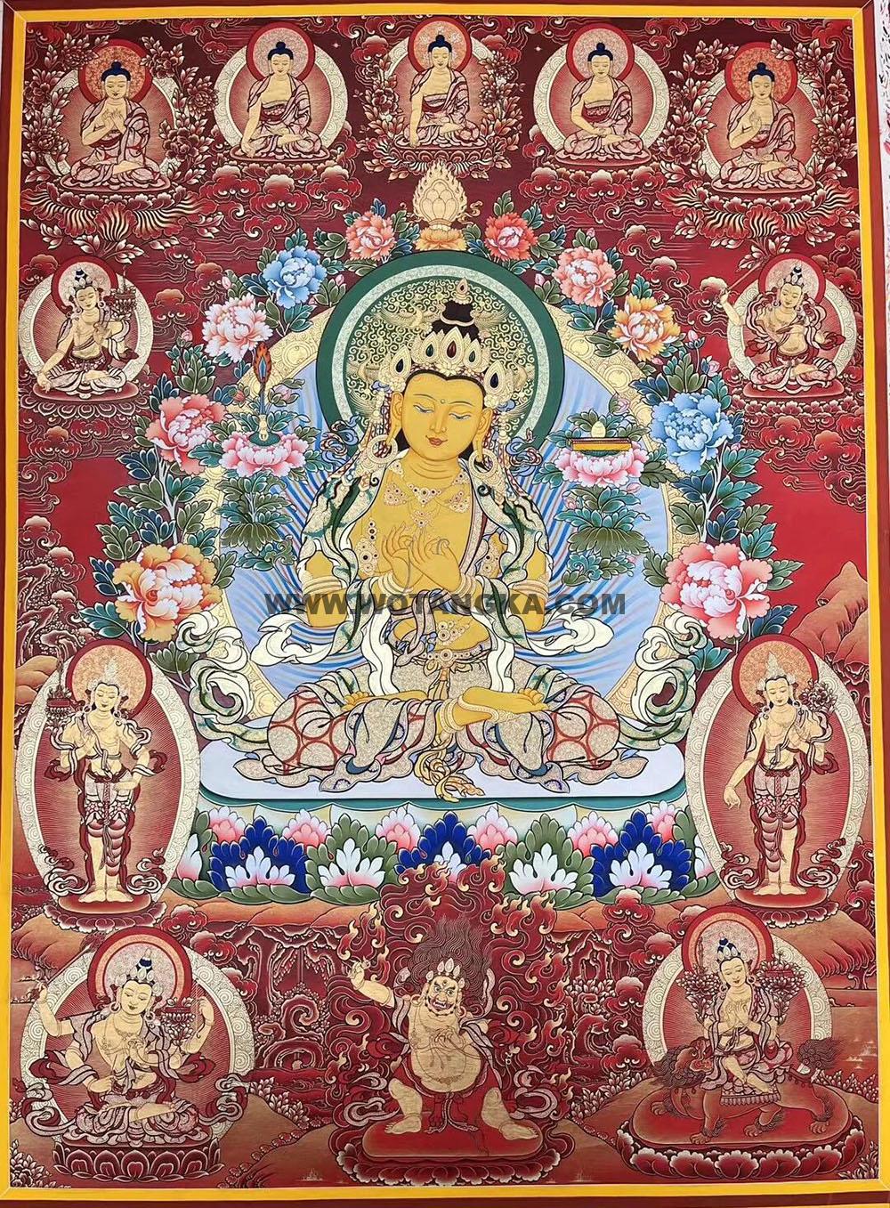 唐卡材质:白棉布、名贵矿石颜料、黄金等贵金属