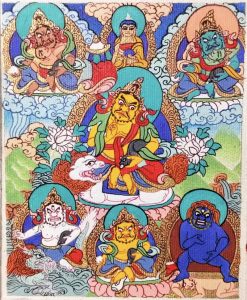 财宝天王是格鲁派祖师宗喀巴大师所供奉的护法。在宗喀巴大师的传记中,就记载着赐予财富、协助宗喀巴大师修建寺院的神奇故事。