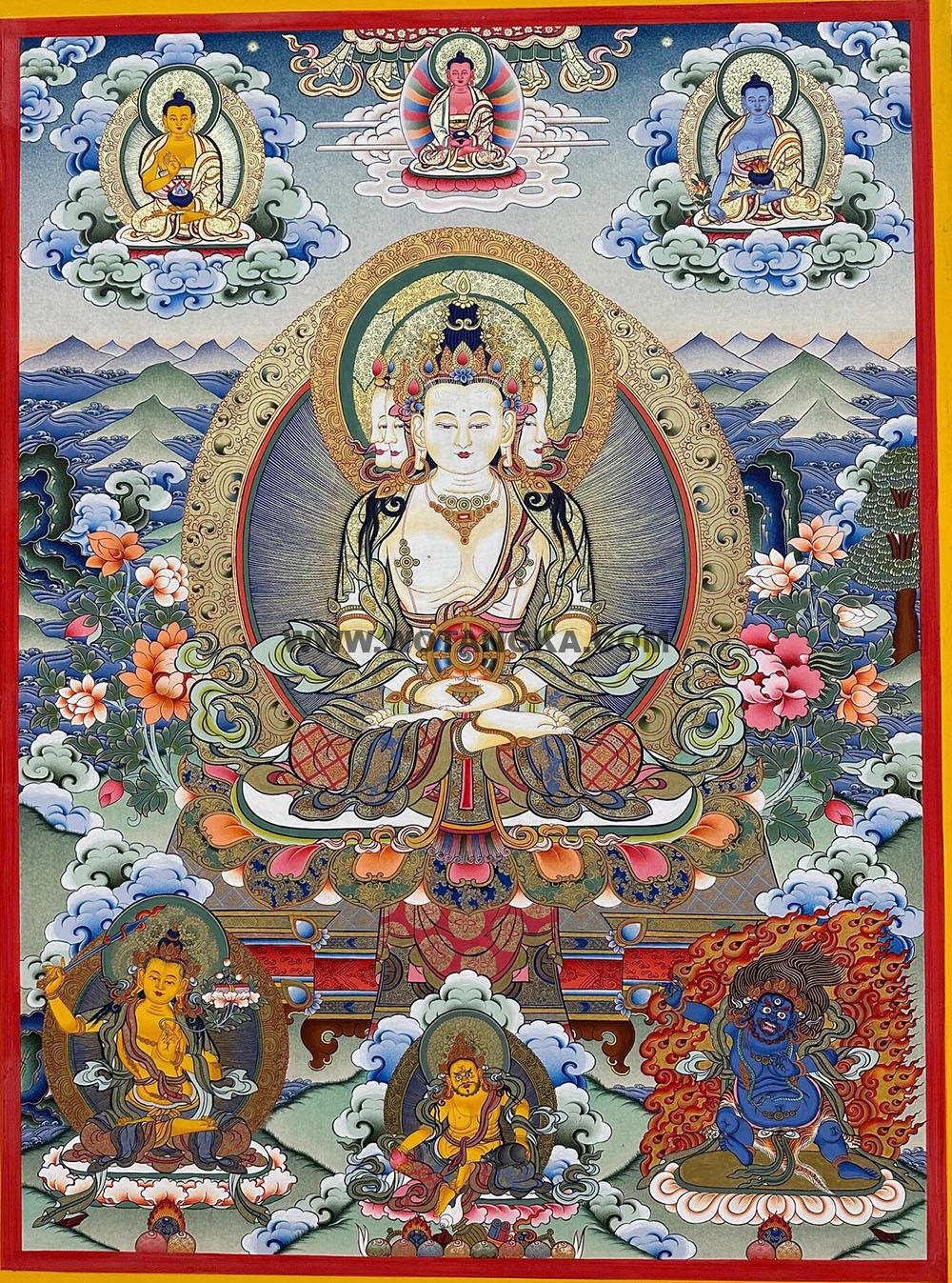 唐卡材质:白棉布、名贵矿石颜料、黄金等贵金属