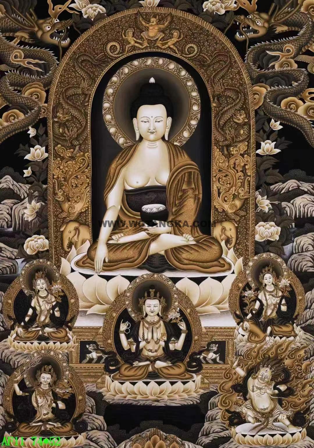 纽瓦立知名唐卡画师力作《释迦牟尼佛》唐卡手绘布本,画工细腻,开脸殊胜,是一副难得一见的好唐卡作品。