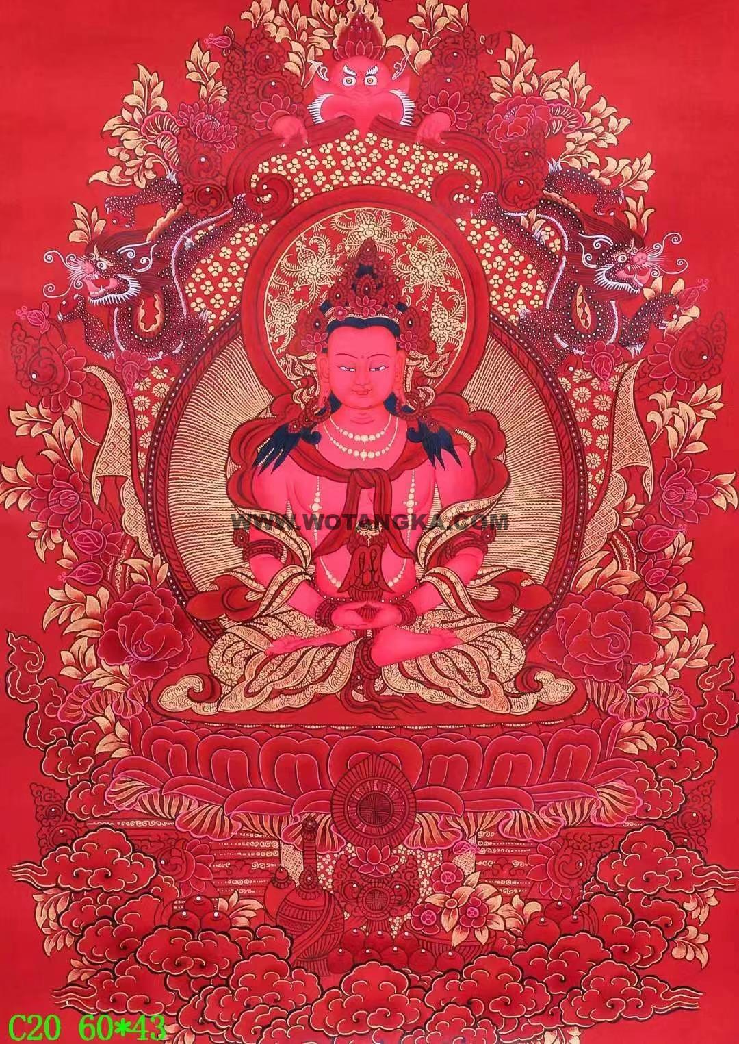 尼泊尔成名画师手绘力作,纯手绘布本唐卡【长寿佛】,作品采用24K真金金粉混合天然颜料纯手绘而成。作品主尊宝相传神。布图干净精美、画工非常的细腻,严格的遵照佛经的度量仪轨如法绘制,期待有缘人。