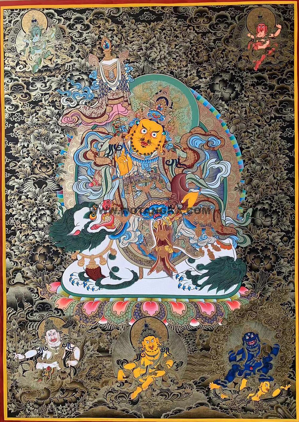 编号188-708355:黑金唐卡-财宝天王·五方财神(100*70CM左右)
