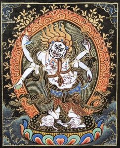 六臂白玛哈嘎拉正名为白如意珍宝依怙主 。首宏於香巴噶举,後另传至萨迦派分支,为特别不共法门,是求财的智慧护法,相传此尊住於印度清凉尸陀林。