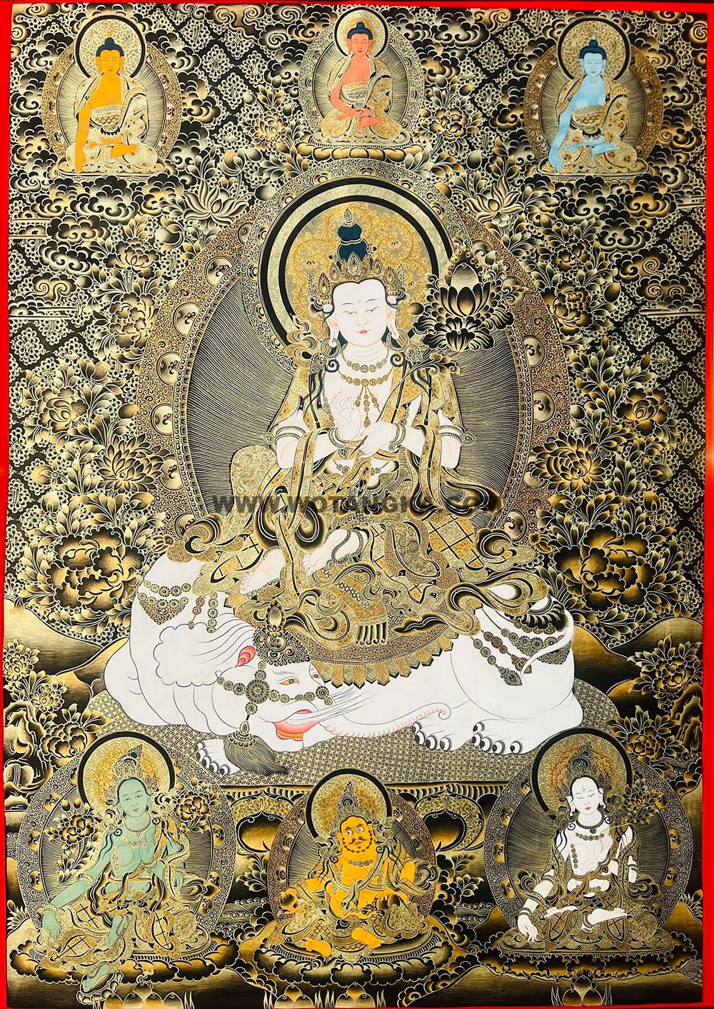 编号188-483223:黑金唐卡-普贤菩萨(100*70CM左右) | 沃唐卡www.WoTangKa.com
